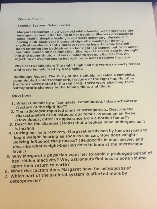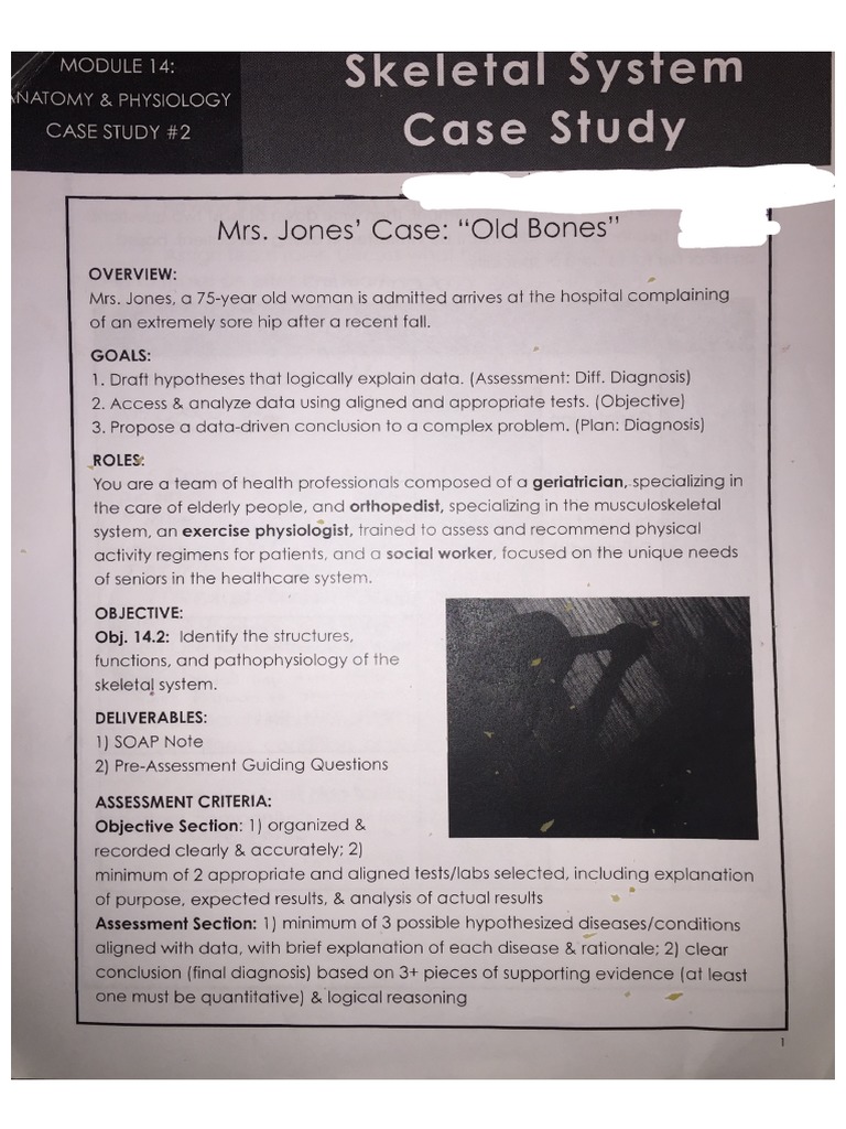 Medical Word Parts The many parts of the skeletal system can be. Skeletal System Case Study MODULE 14. These conditions caused by high heels are all problems of the skeletal system which includes bones and connective tissues that hold bones together and cushion them at joints such as the knee. Grading criteria 2011 Expectations and Grading Criteria for Case Studies. And university graduates - Case Study Skeletal System Quizlet with thesis papers. Rated 46 5 based on 9070 customer reviews. Jones a 75-year old woman is admitted arrives at the hospital complaining of an extremely sore hip after a recent fall.