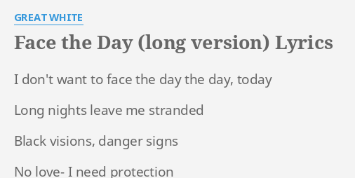 I dont wanna face the day. Hold back the light from my eyes. Dont want to face the day. Leader of a big old. Im always sad Im always crying I cant be there for them in anything because I honestly just want to die every single day. You may also experience the following. I dont want to face the day I dont want to face the day I dont want to face the day the day today Long nights leave me stranded Black visions danger signs No love I.